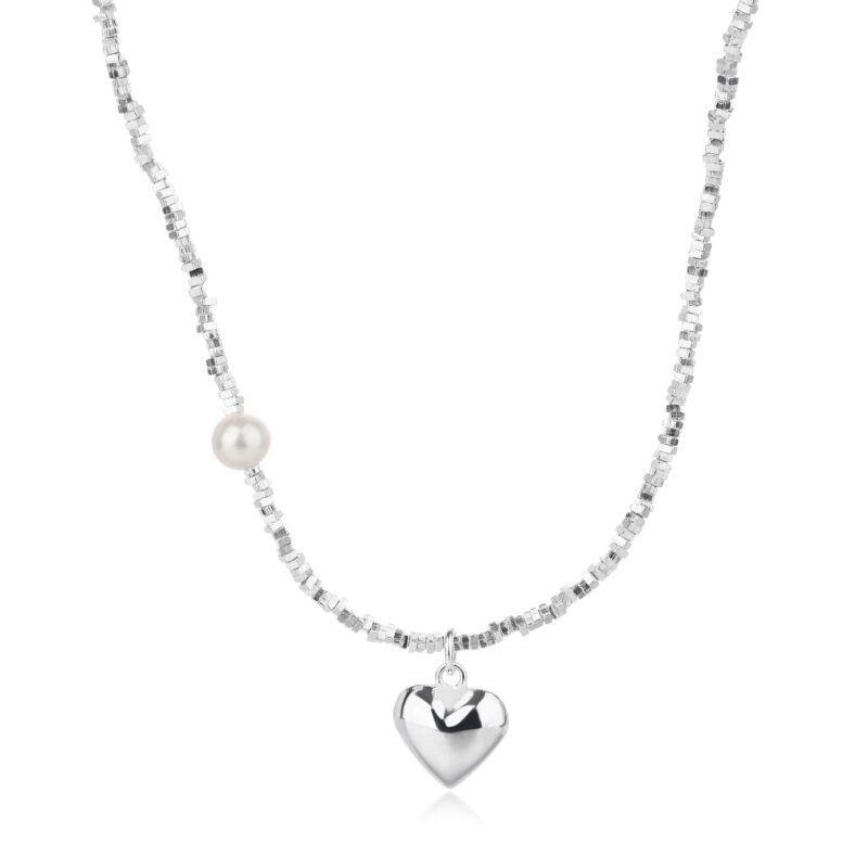 Heart of Pearl Necklace 925 Sterling Silver Pearls Adjustable Women's Fashion Necklace Pendant Gift for Her