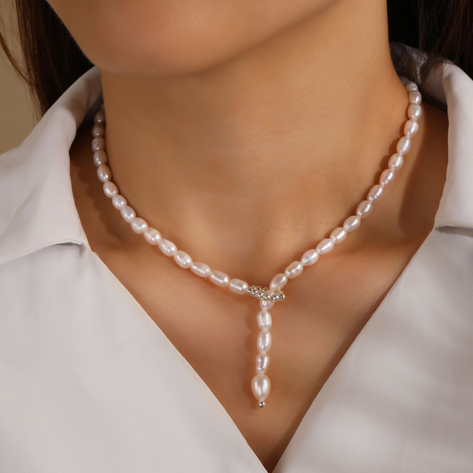 Touch of Pearl Necklace 925 Sterling Silver Baroque Pearls Adjustable Women’s Fashion Necklace Gift for Her