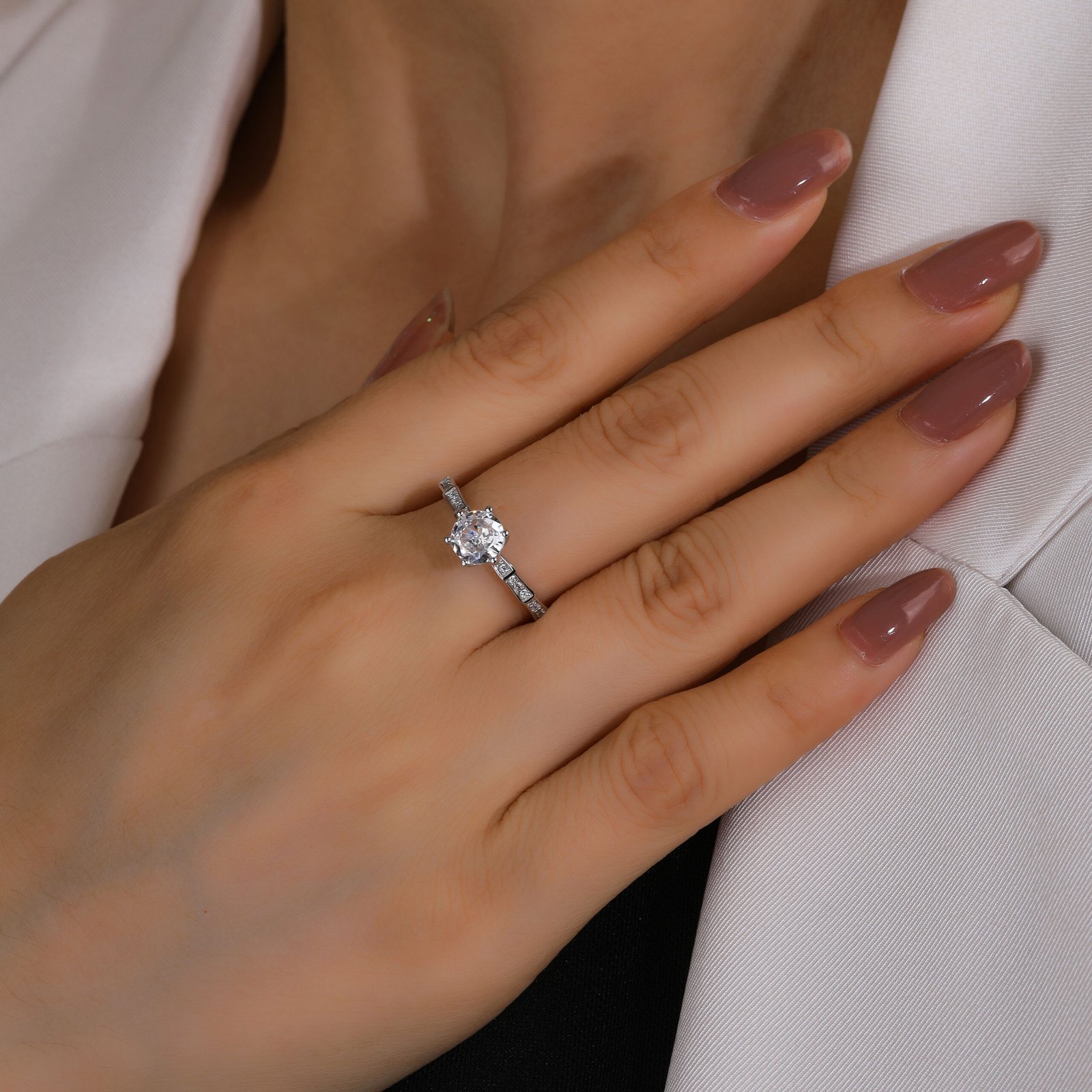 Eterna Diamond Ring 18K White Gold Vermeil CZ Diamond 925 Sterling Silver Adjustable Ring