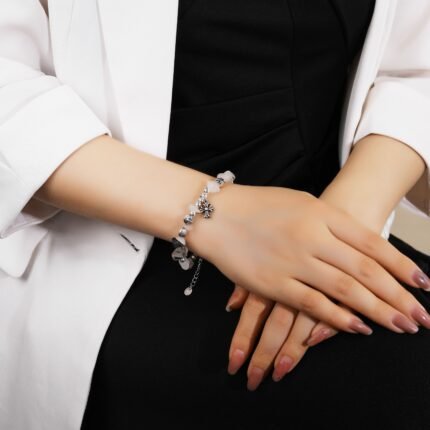 Ocean Waves Bracelet 925 Sterling Silver Crystal Agate Adjustable Women’s Fashion Bracelet Gift for Her