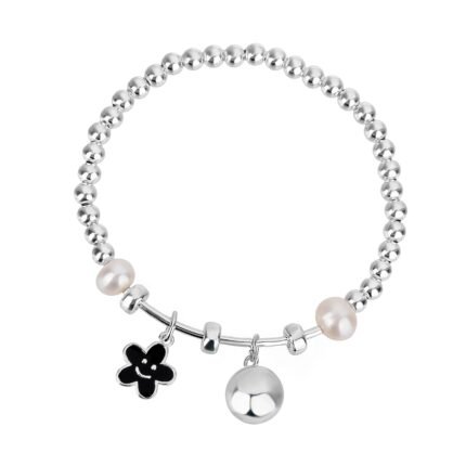 Smiley Flower 925 Sterling Silver Adjustable Bracelet with Baroque Pearls Women’s Fashion Style Gift for Her