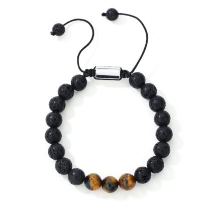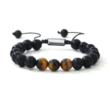 Natural Tigers Eye And Lava Rock Stone Bracelet Adjustable Spiritual Healing for Anxiety and Stress Gift for Men & Women