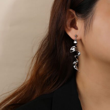 Fluid Charm Earrings 18K White Gold Vermeil 925 Sterling Silver Women’s Fashion Earrings Gift For Her