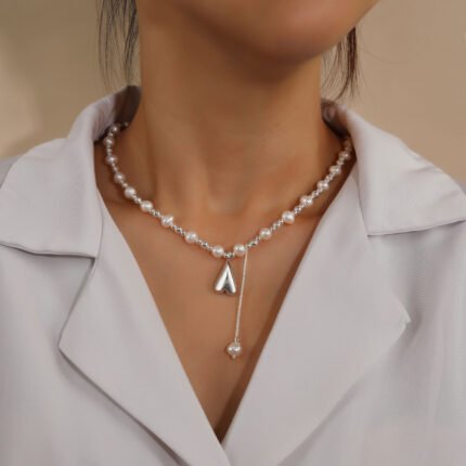 Heart of Pearl Necklace 925 Sterling Silver Pearls Adjustable Women’s Fashion Necklace Pendant Gift for Her