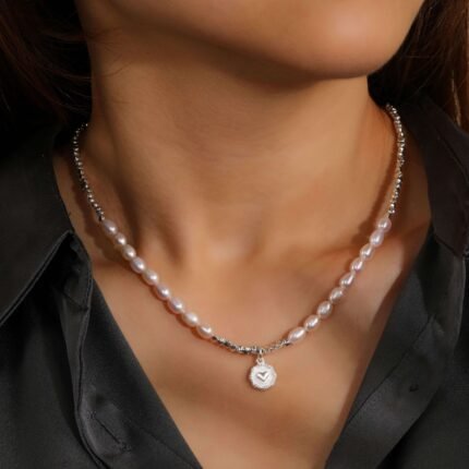 Heartbeat Pearl Necklace Freshwater Pearl 925 Sterling Silver Adjustable Women’s Fashion Jewelry Gift for Her
