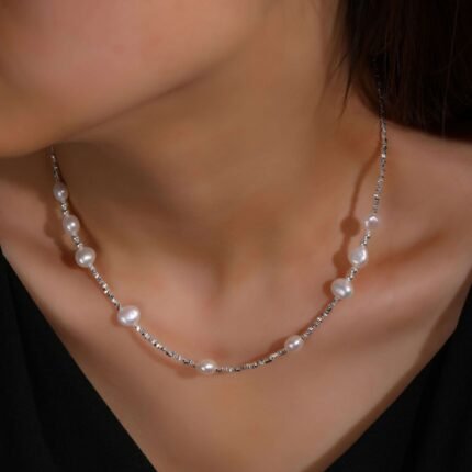 Mystic Silver Pearls Necklace 925 Sterling Silver Baroque Pearls Adjustable Women’s Fashion Necklace Gift for Her