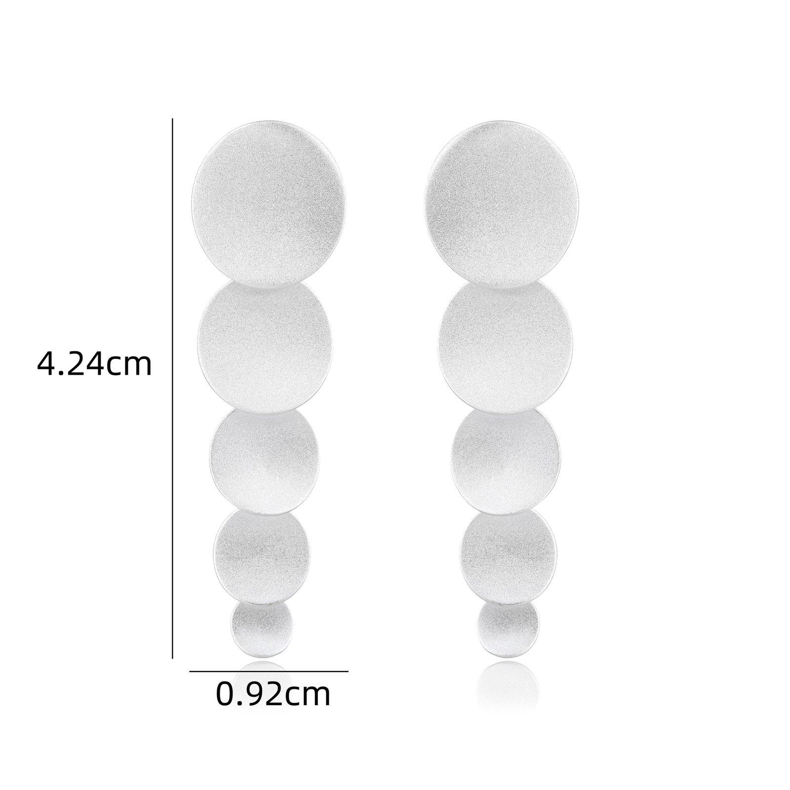 Their modern, geometric design adds a contemporary and artistic touch to any look, perfect for those who appreciate distinctive, elegant jewelry that effortlessly stands out. These Stellar Cascade Earrings feature a series of graduated circular forms, meticulously handcrafted from 925 sterling silver, a unique and sophisticated finish.