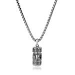 Our “Enchanted Column Pendant and Necklace” collection, meticulously crafted from the finest 925 sterling silver material. The pendant, adorned with the sacred six-word mantra, exudes an aura of spirituality and tranquility. Each intricately carved character holds profound meaning, offering protection and guidance to the wearer.